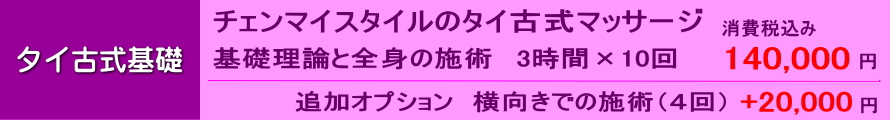 初めてタイ古式マッサージを学ぶ方や、個人サロンのメニューにタイ古式を加えたい方、もみほぐし店などのボディケアでタイマッサージを応用したい方のための基礎講座です。